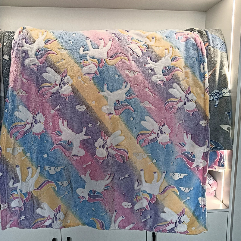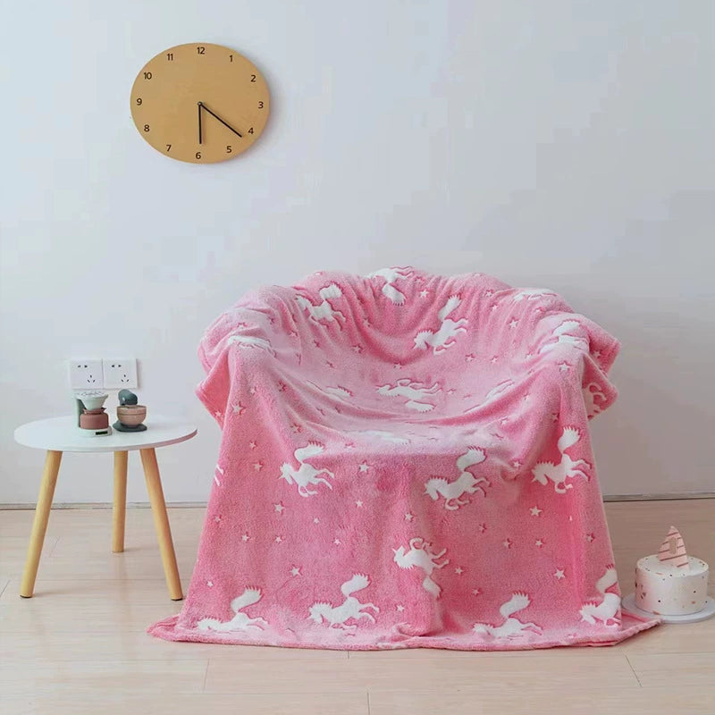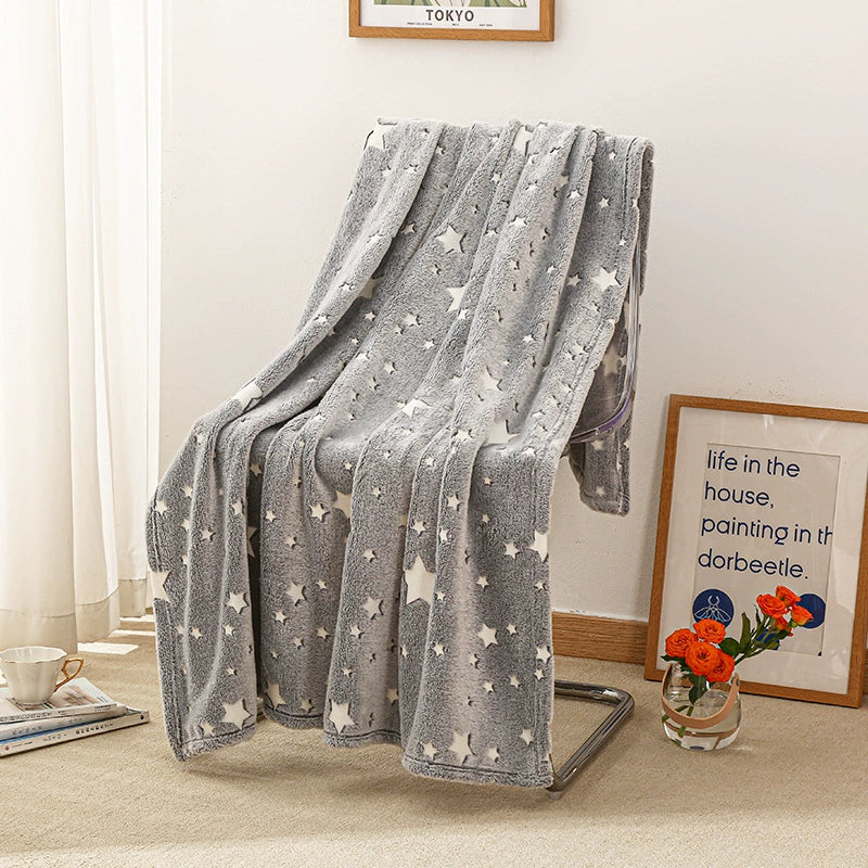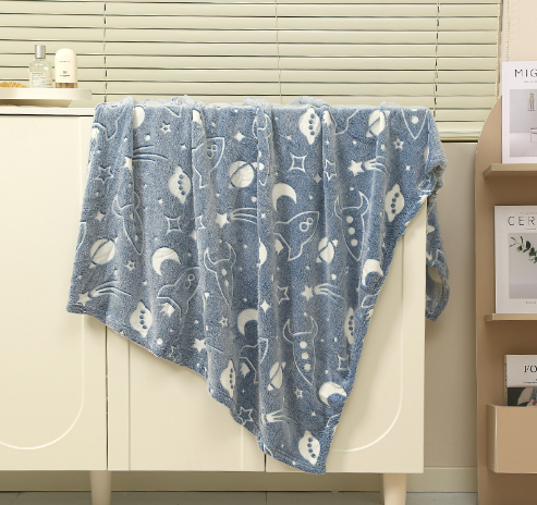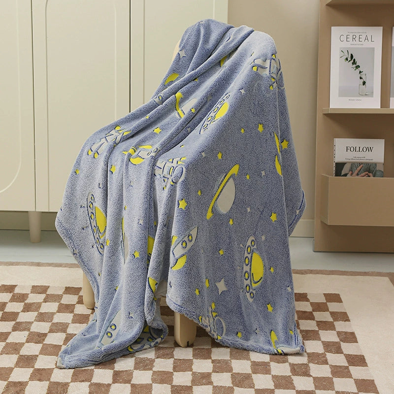 Com estampas que se iluminam suavemente no escuro, essa manta é mais do que um cobertor: é um abraço aconchegante cheio de luz e imaginação!